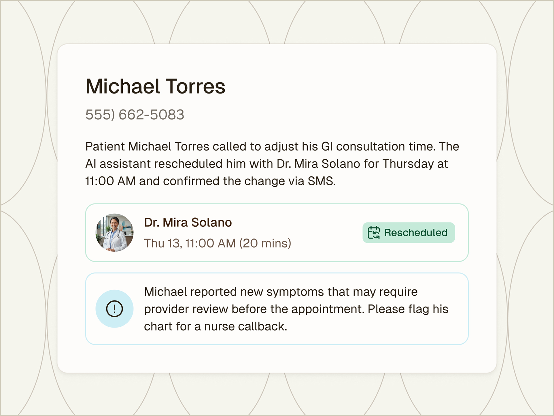 AI-powered assistants designed to reduce no-shows, streamline patient inquiries, and free up your staff’s time.